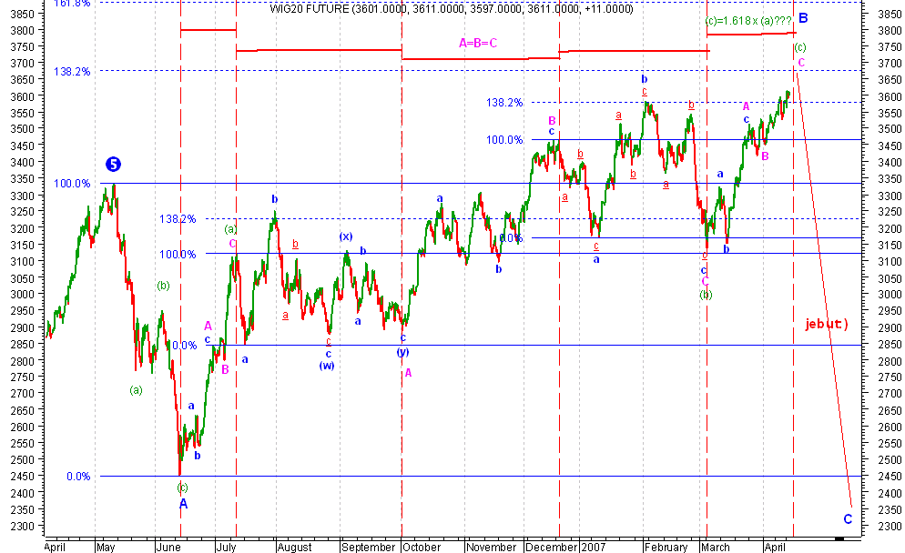 Oto przepowiednia Lema odnośnie Wig20 z kwietnia 2007 oraz dwa wykresy tego indeksu.