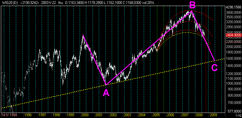 ps. 1300 pkt dziś wydaje się nie realne, natomiast czasowo nie sądzę by zmiana/zatrzymanie trendu długoterminowego nastąpiła wcześniej niż w 2010 roku