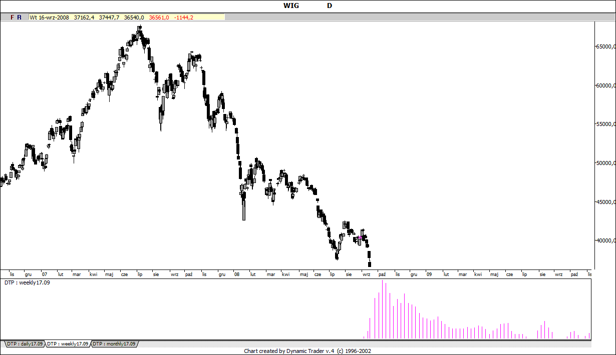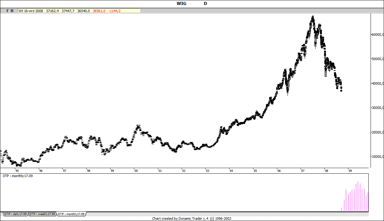 Dla ciekawych hisogramy dla WIG - miesięczny, tygodniowy i dzienny.