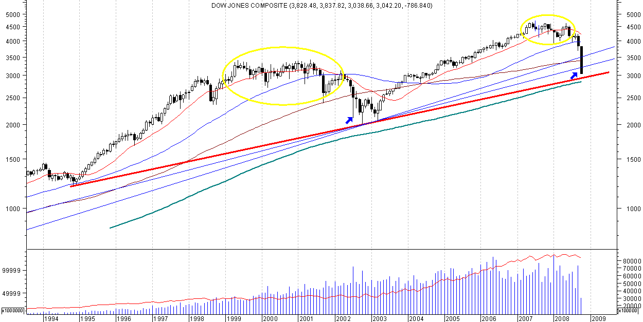 poniewaz klucz do rozwiazania zagadki lezy za oceanem w poszukiwaniu analogii znalazlem wykres miesieczny szerokiego rynku nyse - dow jones composite (nie mylic z industriale).