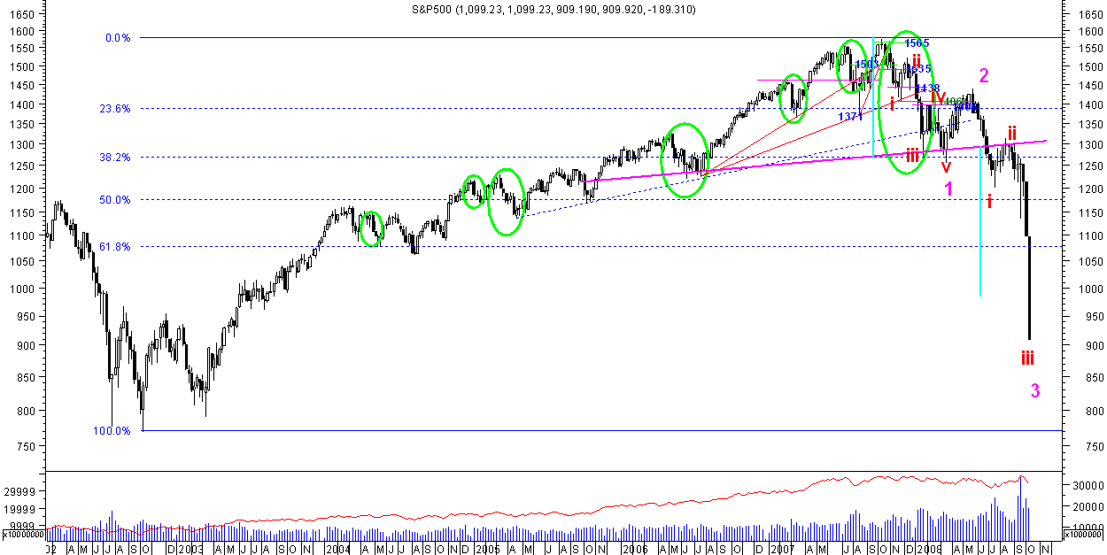 wazniejszy jednak jest dluzszy horyzont. jak widac na wykresie - w przypadku realizacji tego scenariusza - i tak w ciagu 3 miesiecy zaliczymy nowe dno, co nie powinno dziwic, gdyz jak widac na pozostalych wykresach - jestesmy w najbardziej dynamicznej fali 3 w 3 w C.