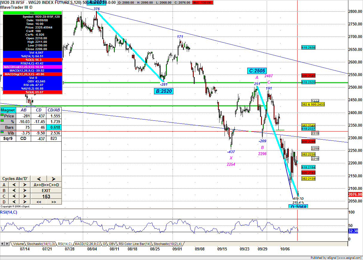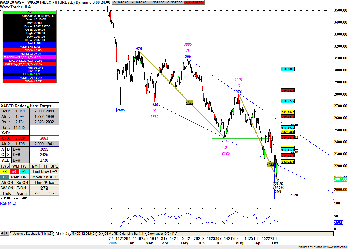 Na całe szczęście skorelowałem się w 100% kilka punktów nad otwarciem na serii H (shorty) poziom 2106-2108 i wytrzymałem aż do poziomu 2042-44 pkt. Póżniej H była jeszcze dużo niżej, ale rozkorelowania nie żałuję, bo i tak H skończyła na 2051. Załuję, tylko że zabrakło mi odwagi i trzeżwej oceny sytuacji i że nie wziąłem tych H dwa razy tyle, co miałem Z. Wtedy moje samopoczucie i straty byłyby inne. A tak mimo tego całkiem udanego dealu na serii H i tak dzisiaj bardzo dużo straciłem, coś rzędu 120 pkt ... W dodatku nóż w plecy to zmiana depozytu (co za idiotyzm!) i wprawdzie zostałem na wszystkich Z, jakie miałem wcześniej, ale mój depozyt starczyłby akurat na tyle pozycji Z, ile mam, ale przy starym depozycie (miałem zapas gotówki na koncie i już nie mam)... Teraz gorączkowo szukam gotówki na depo na poniedziałek, jak się nie uda, to trudno - częściowa interwencja mnie czeka (albo poranna samointerwencja ...). Z resztą konsekwentnie na longach. Mam nadzieję, że poranne notowania będą na plusie, ale jeśli takich jak ja jest więcej, którzy przez zmianę depo mogą mieć problemy (i przez straty też), to z plusów nici ...