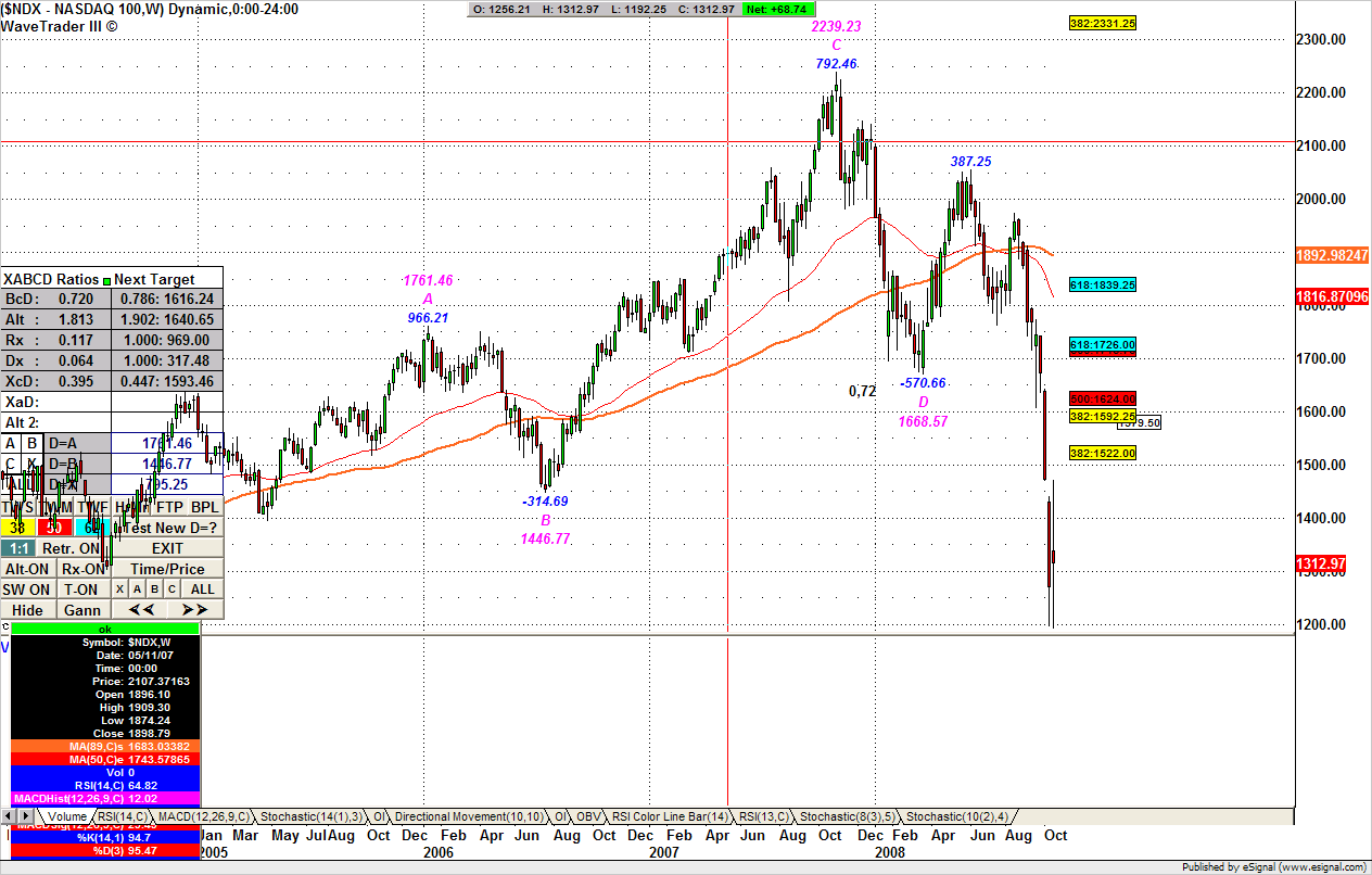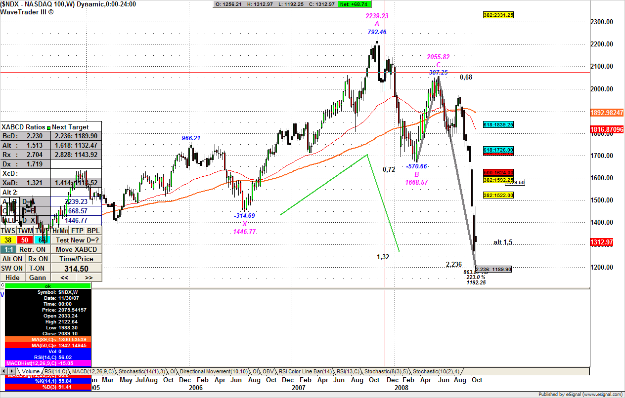 na nasdaq formacje wzmacnia to ze wewnatrz jest ABCD harmoniczne, widac je na rysunku. Ale jak mowie to interwal 1W wiec sie nei warto podpalac pod to bo nie raz mozna zbankrutowac na tygodniowych wahaniach"