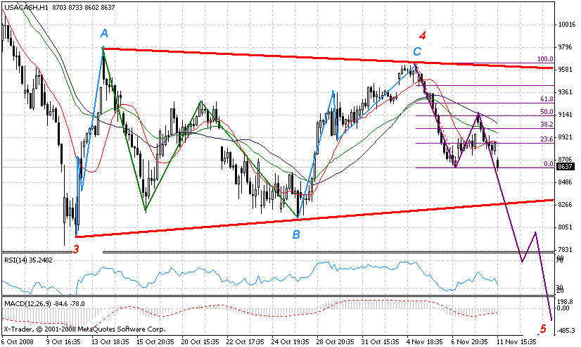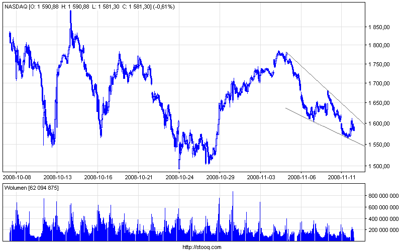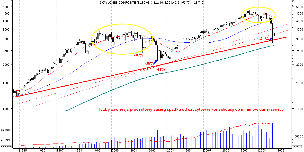 U nas trojkat zwyzkujacy a wyglada na to ze w USA mamy trojkat znizkujacy z tym ze na innym interwale.Jeżeli DJIA obroni dolne ograniczenie w okolicach 8300pkt w20 po zaliczeniu dolka w okolicach 1700pkt powinien nakreslic fale C i dojsc do 2120pkt.