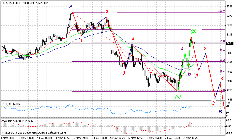 Wśród wielu inwestorow panuje przekonanie co do wzrostu.........ja nie jestem przekonany.poniżej załączam wykres intra daxa , ktory imo eliminuje potencjalny orgr ......na większości wykresow indexów zachodnich raczej kreslimy 4 fale