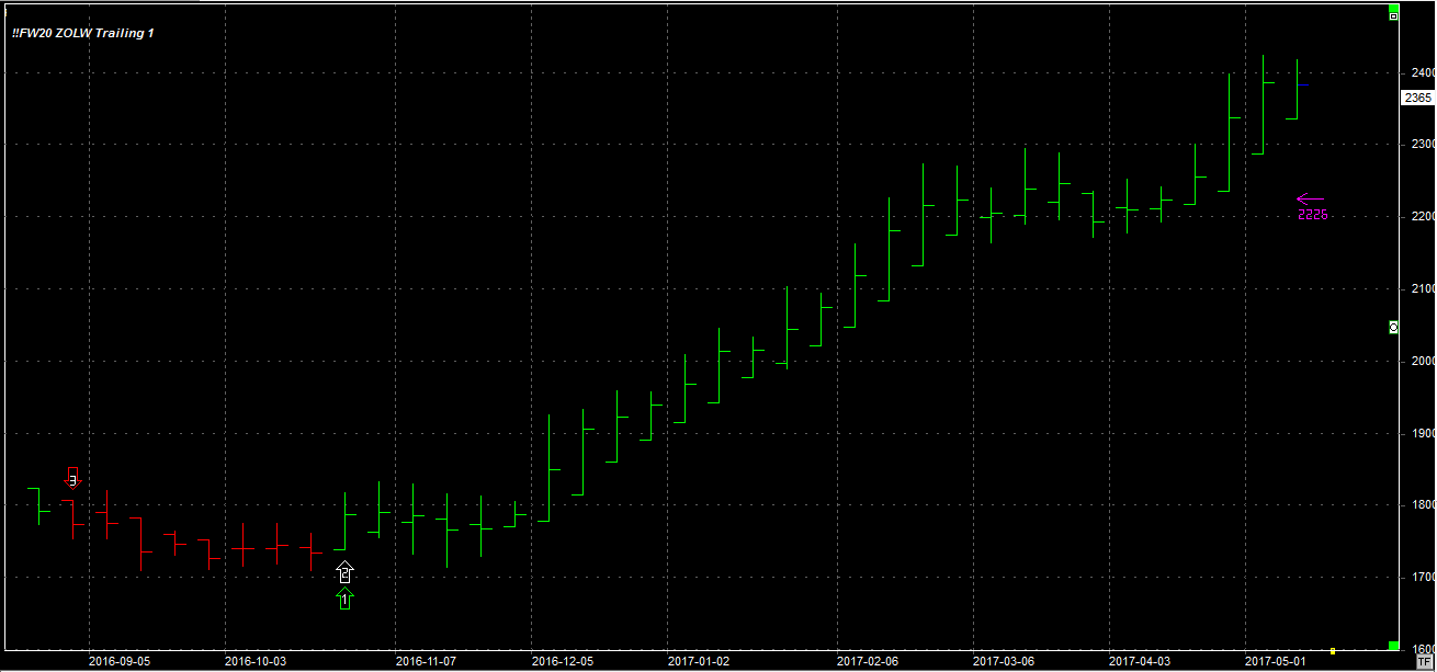 Tydzień zamknął się na poziomie 2365 pkt., 25 pkt. niżej niż tydzień temu. System utrzymuje pozycję długą 1 szt. po 1817 pkt. Stop dla pozycji 2226 pkt.