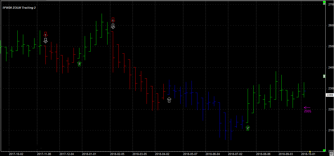 Tydzień zamknął się na poziomie 2269 pkt., 24 pkt. niżej niż tydzień temu. System utrzymuje dwie pozycje długie po 2276 pkt. Stop 2205.