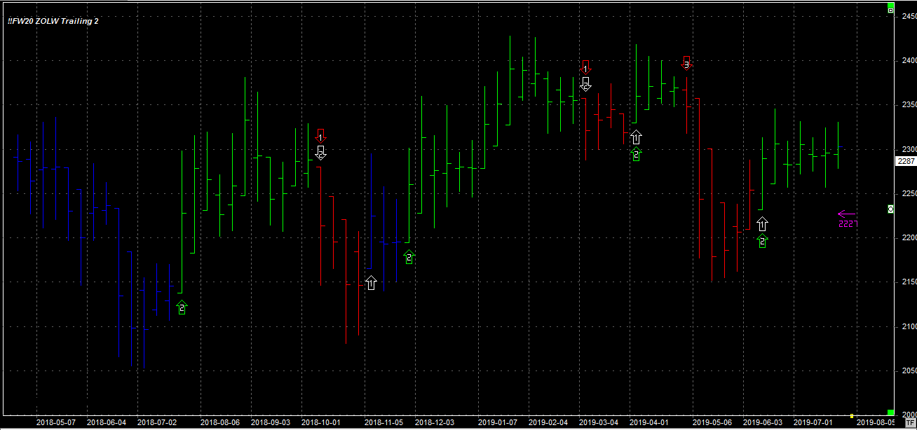 Tydzień zamknął się na poziomie 2287 pkt., 39 pkt. niżej niż tydzień temu. System utrzymuje dwie długie pozycje po 2292 pkt. Stop dla pozycji 2227 pkt.