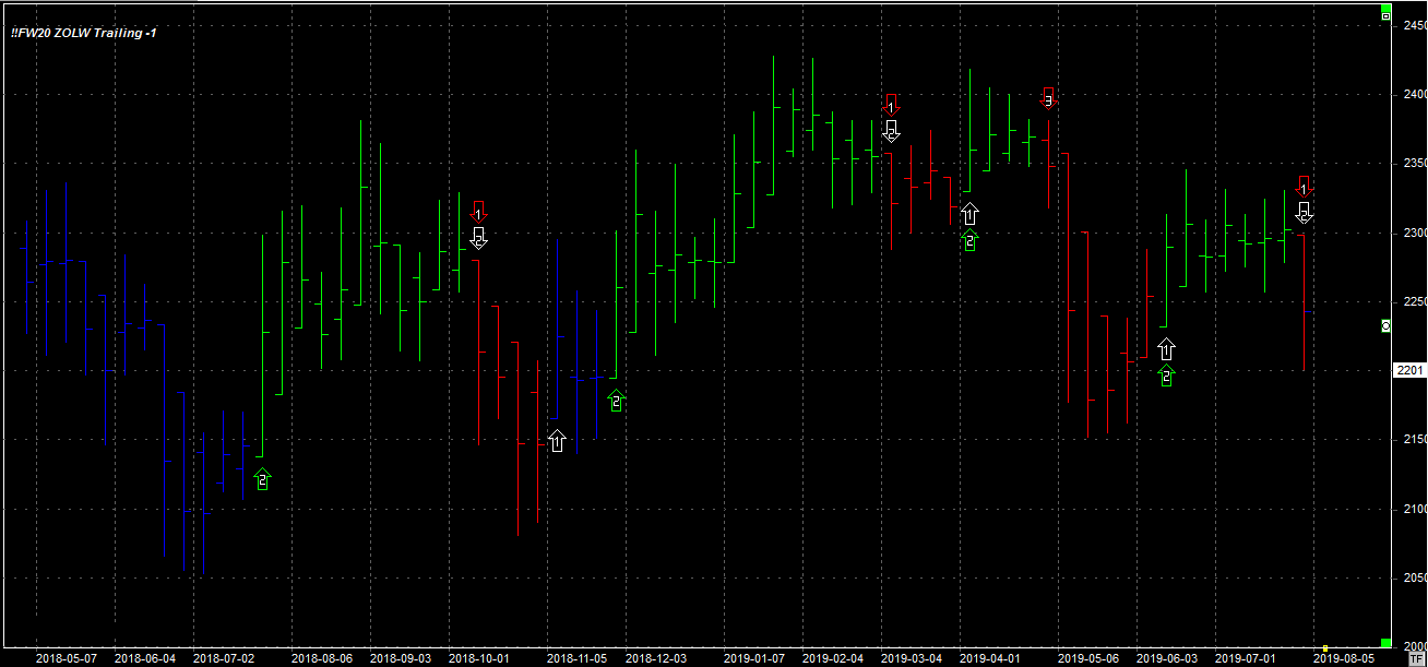 Tydzień zamknął się na poziomie 2201 pkt., 86 pkt. niżej niż tydzień temu. System został wystopowany z dwóch długich pozycji po 2227 pkt, a następnie odwrócił się na jedną krótką, na zamknięciu w piątek po 2201 pkt. Obecna pozycja króka 1 szt. po 2201 pkt.