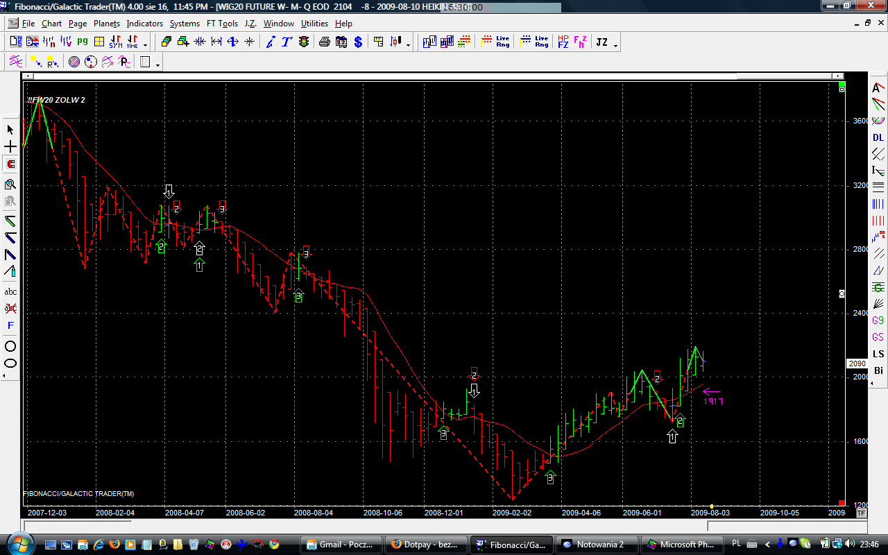 Ciekawa sytuacja na wykresie FW20 z liniami Marsa. Kontrakty ugrzęzły pomiędzy dwoma liniami obie strony nie chcą odpuścić. Kto wygra? Na razie trudno orzec ale ruch po wyjściu z konsolidacji powinien być dość silny. Oceniam, że może przenieść kontrakty o dwa pietra w górę lub w dół.
