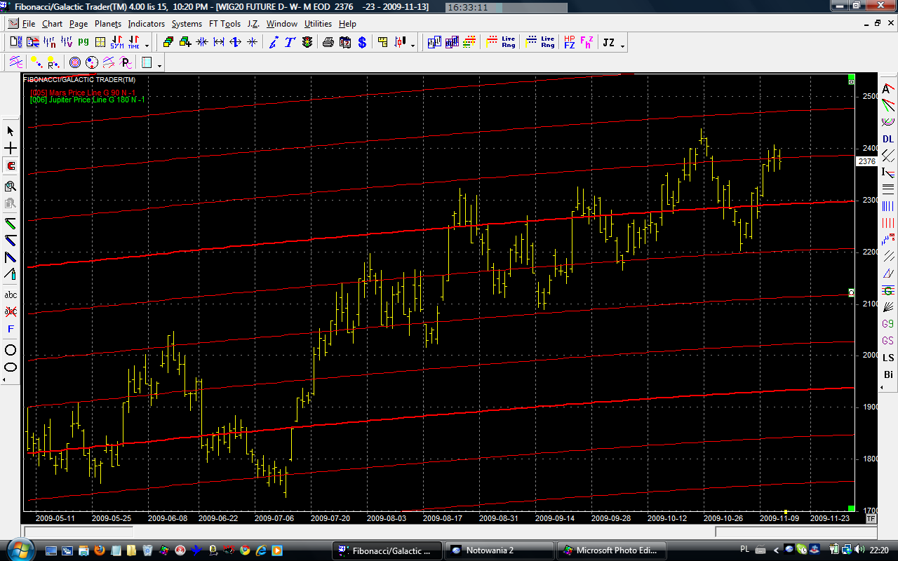 Zapowiadany w zeszłym tygodniu ponowny atak na linię Marsa stanowiącą opór uwieńczony został powodzeniem. Tak jak zakładałem handel przeniósł się od razu w okolice następnej linii i tam też rozgrywa się walka. Wg mnie są szanse no dojście do następnego oporu. Tu jednak uwaga. Gdyby kurs nie miał dość siły aby tam dojść to, tak jak miało to miejsce wiele razy, może zawrócić i spaść od razu o dwa pięterka. Na razie jednak to byki rozdają karty.