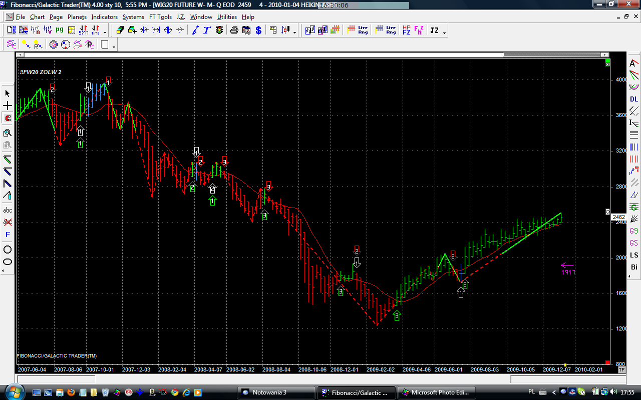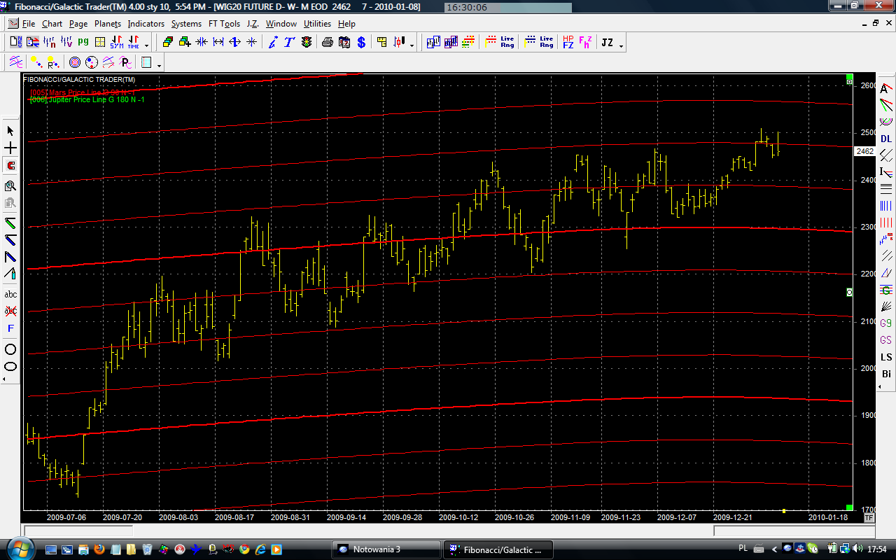 Na wykresie FW20 z liniami Marsa pomimo moich wątpliwości dotarliśmy do linii stanowiącej opór. Na razie dwa podejścia mające na celu jej przebicie zostały odparte. Wydaje się, że przed ewentualnym trzecim atakiem rynek powinien się konsolidować. Możliwe więc, że zobaczymy boczniaka lub zejście do niższej linii, będącej wsparciem.