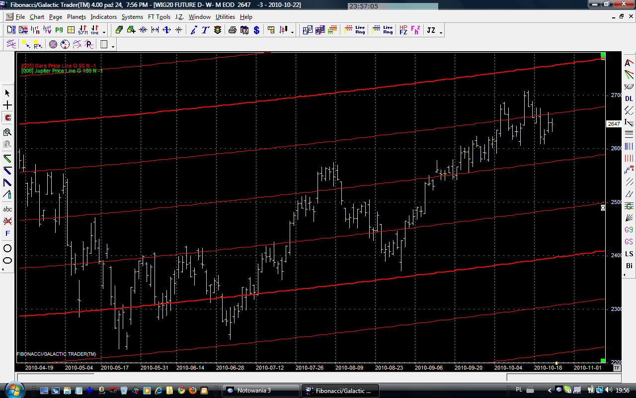 Na wykresie z liniami Marsa niedźwiedziom udało się zepchnąć kontrakty poniżej linii wsparcia/oporu i teraz toczy się walka o to czy byki zaatakują ponownie czy zostaną zepchnięte dalej. Zejście nie jest duże więc jestem optymistą co do wyniku tej walki. Wg mnie przyszły tydzień zamkniemy wyżej niż jesteśmy.