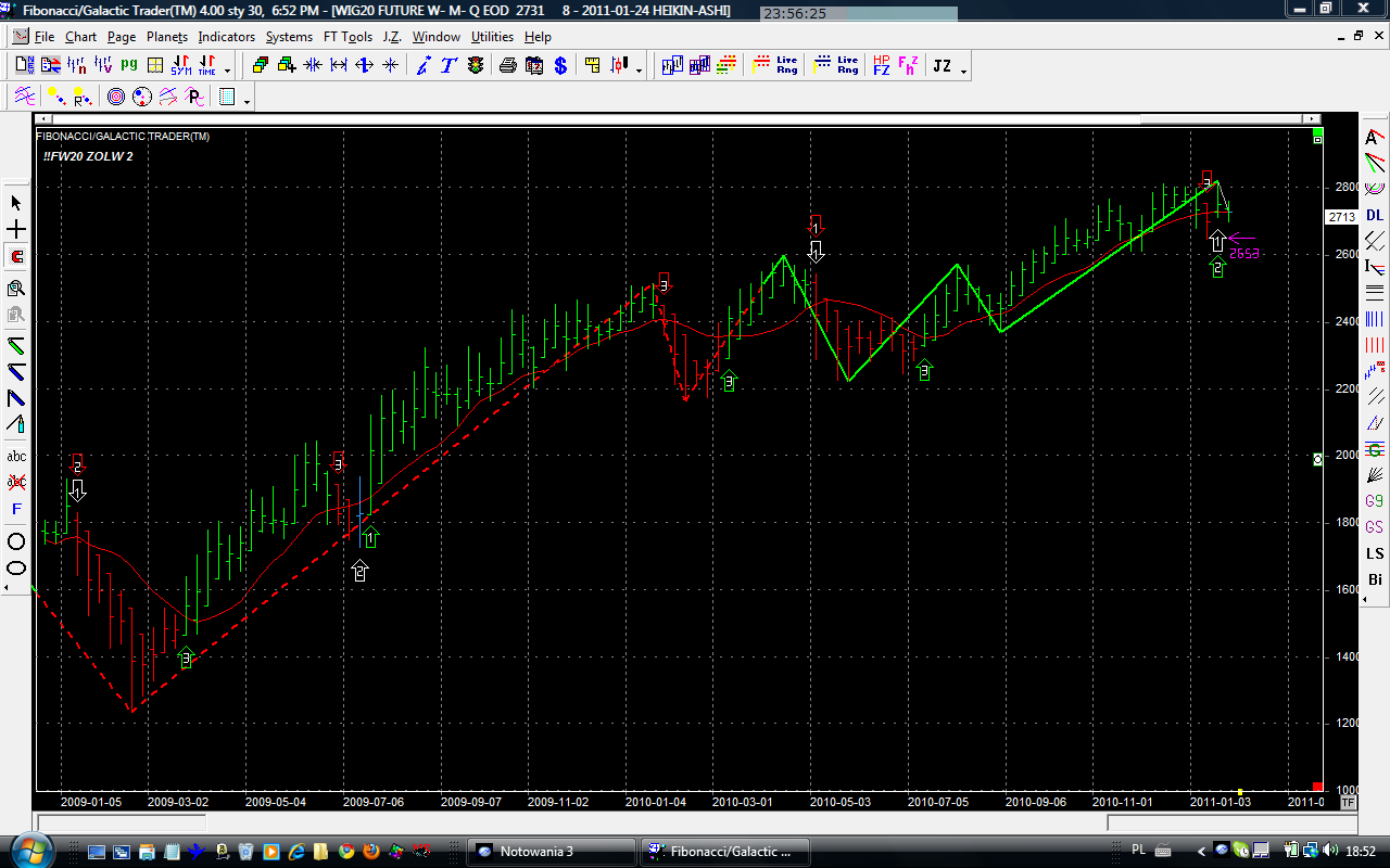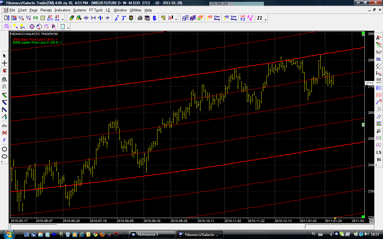 Na wykresie z liniami Marsa widać wyraźnie, że wsparcie w okolicach 2750 padło. Konsekwencje wg mnie będą takie, że pocałujemy prędzej czy później kolejne piętro, że wsparciem na linii Marsa w okolicach 2650 pkt.