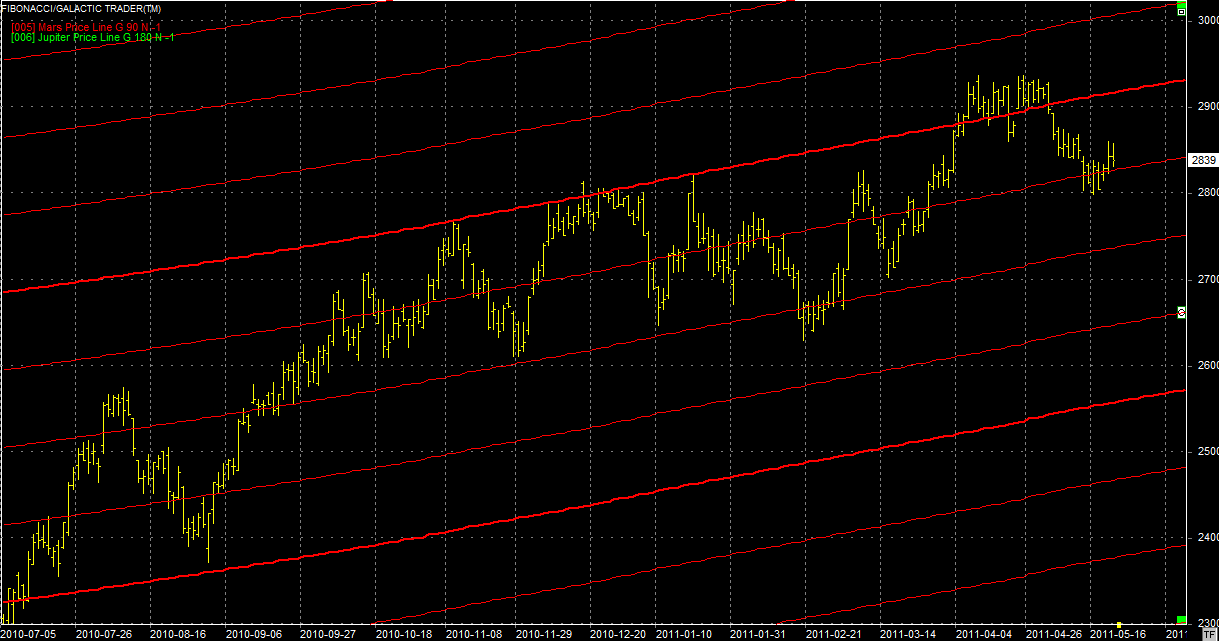 Na wykresie z liniami Marsa widać walkę na wsparciu. Na razie odejście nie jest zachęcające więc wynik walki również nierozstrzygnięty. Jeżeli byki się nie zmobilizują to pojedziemy windą w dół, możliwe, że więcej niż o jedno piętro.