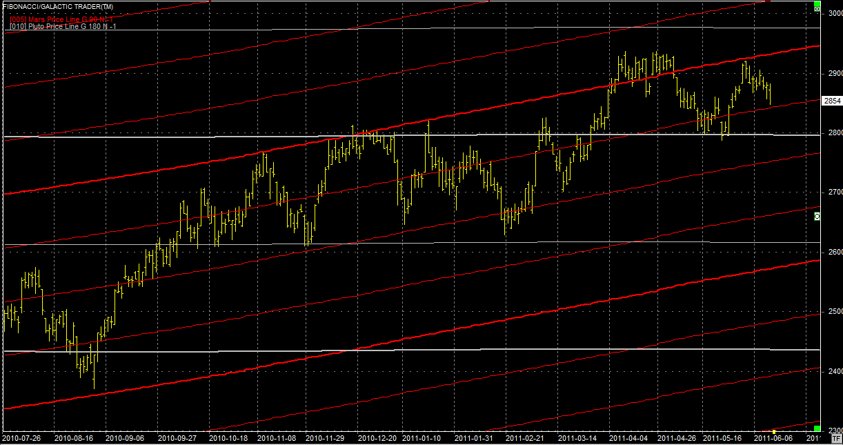 Na wykresie z liniami Marsa widać dokładnie od jakiej bandy odbiliśmy się na początki czerwca. Polecam ten wykres wszystkim prześmiewcom metodologii opartej na liniach planetarnych. Jest ona dla mnie, jako technika, dużo ciekawsza niż wróżby z aspektów. Tam determinantą w miarę skuteczną jest czas, reszta, czyli kierunek pozostaje enigmą gdzie prawdopodobieństwo poprawnej prognozy oscyluje w długim okresie w okół 50%