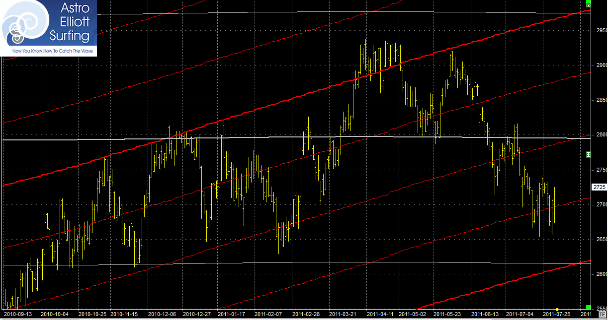 Na wykresie z liniami Marsa widać walkę o wsparcie. Wynik tej walki w krótkim okresie zależy od porozumienia w Stanach. Patrząc na wykres jednak ostatnie ruchy wydają się korekcyjne w charakterze, stąd podtrzymuję moją wcześniejszą optykę, która zakłada spadek do okolic 2610-2620 pkt, choć może nie od razu.