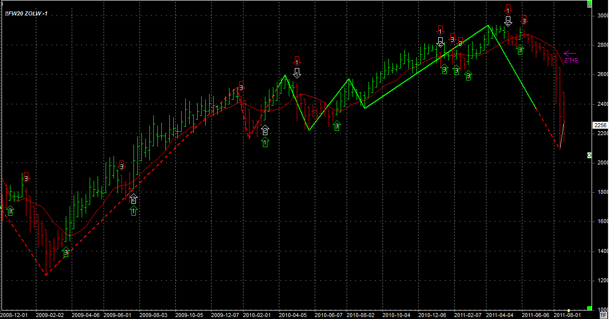 Jeżeli chodzi o system Żółw to tydzień zamknął się na poziomie 2256 pkt, 65 pkt poniżej poprzedniego. Żółw utrzymuje jedną krótką pozycję sprzedaną po 2834 pkt.