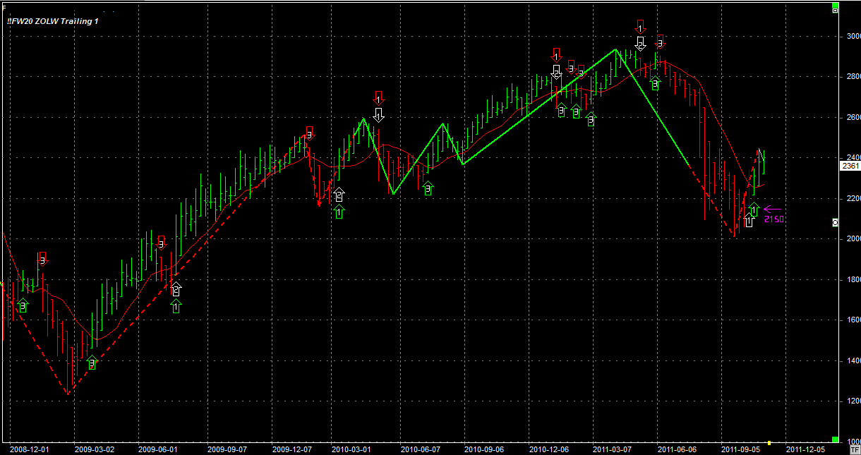 Tydzień zamknął się na poziomie 2361 pkt, 58 pkt niżej niż tydzień temu. System Żółw utrzymuje jedną pozycję długą kupioną po 2330 pkt