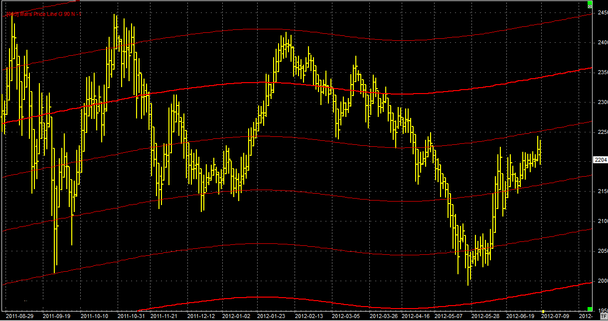 Na wykresie z liniami Marsa FW20 miał spory problem z dotarciem do linii oporu. W rezultacie byki nie dały rady i odwrót nastąpił lekko poniżej. Wg mnie jest to oznaka słabości rynku. Nie wykluczam wiec odejścia spadkowego aż do okolic wsparcia położonego na linii Marsa w okolicach 2170 pkt. Być może dopiero po jego obronie bykom uda się drugi atak.