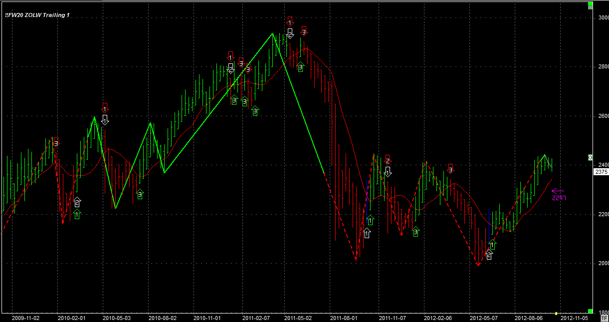 System utrzymuje długą pozycję po 2203 pkt. Stop na 2297 pkt.