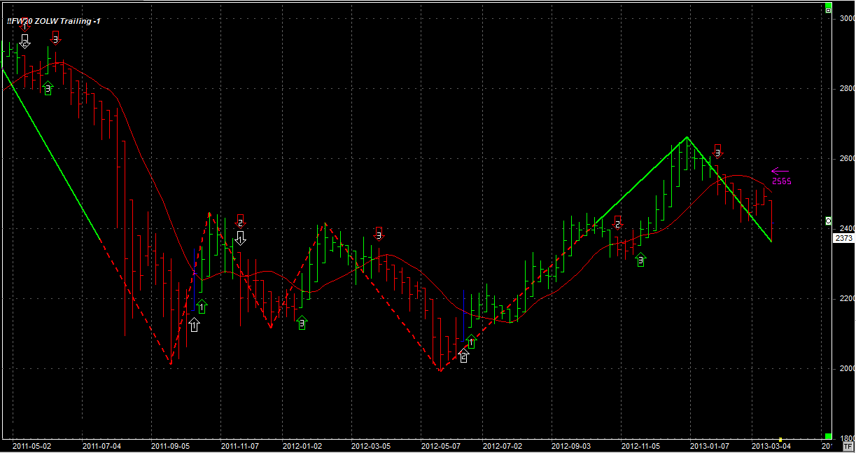 System zajmuje jedną krótką pozycję (przeciw trendowi) po 2514 pkt. Stop dla pozycji krótkiej 2565 pkt.