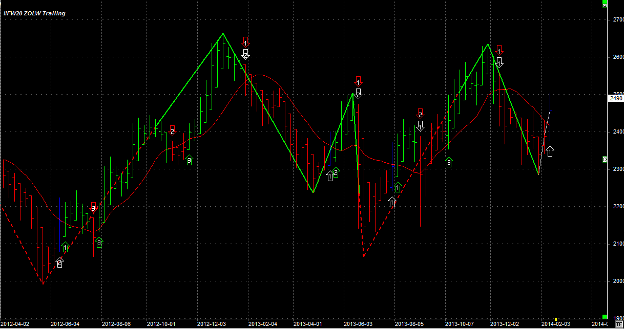 Tydzień zamknął się na poziomie 2490 pkt, 66 pkt wyżej niż tydzień temu. System został wystopowany z pozycji krótkiej po 2460 pkt. Strata z pozycji 21 pkt. Obecna pozycja neutralna.