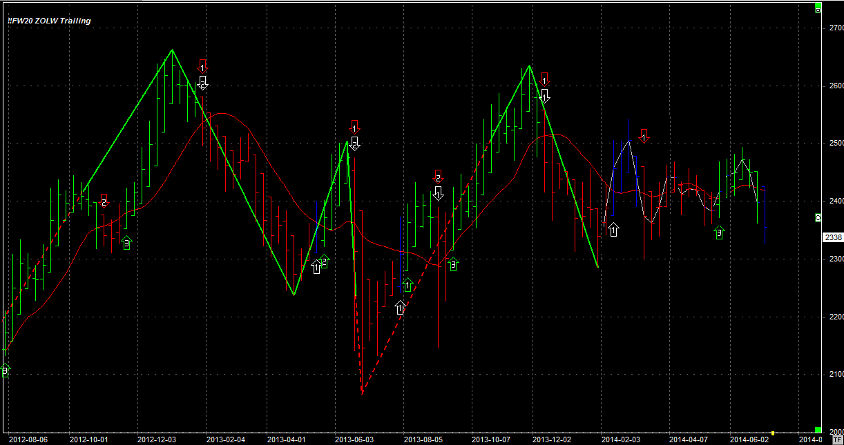 02.07.14 stop loss po 2360 pkt; sztuczna strata 2 x 94 pkt. Poprzednia seria zamknięta z zyskiem 24 pkt;