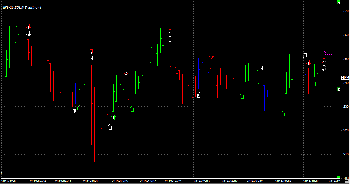 System odwrócił się pozycję krótką - 1 szt (przeciw trendowi) po 2422 pkt. Stop na poziomie 2508 pkt.