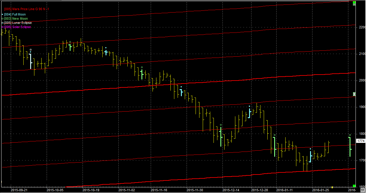 Na wykresie z liniami Marsa bykom udało się podejść do oporu w okolicach 1760 pkt. Na razie nie można mówić o przełamaniu ale są na to szanse. Jak to się uda to trzeba oczekiwać ruchu w okolice 1850 pkt. Jest czas do przyszłego poniedziałku kiedy to mamy zwrotną pełnię. Lepiej jednak byłoby gdyby byki sobie odpoczęły na obecnych poziomach do tej pełni, tak aby przyzwyczaić rynek do nowych wycen, a kontynuację zacząć już po pełni. Lepiej, nie znaczy że tak się stanie. Ostatnio bowiem dało się zaobserwować pozytywną zmianę na naszym parkiecie i odwrotną korelację z rynkami bazowymi. Czas najwyższy. Spadaliśmy przy wzrostach rynków bazowych od maja 2015 roku.