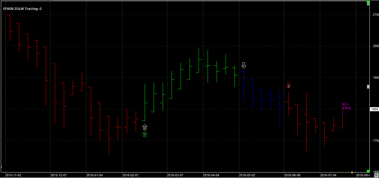 Tydzień zamknął się na poziomie 1800 pkt pkt., 35 pkt. wyżej niż tydzień temu. System utrzymuje 2 krótkie pozycje po 1788 pkt. Stop na poziomie 1816 pkt.