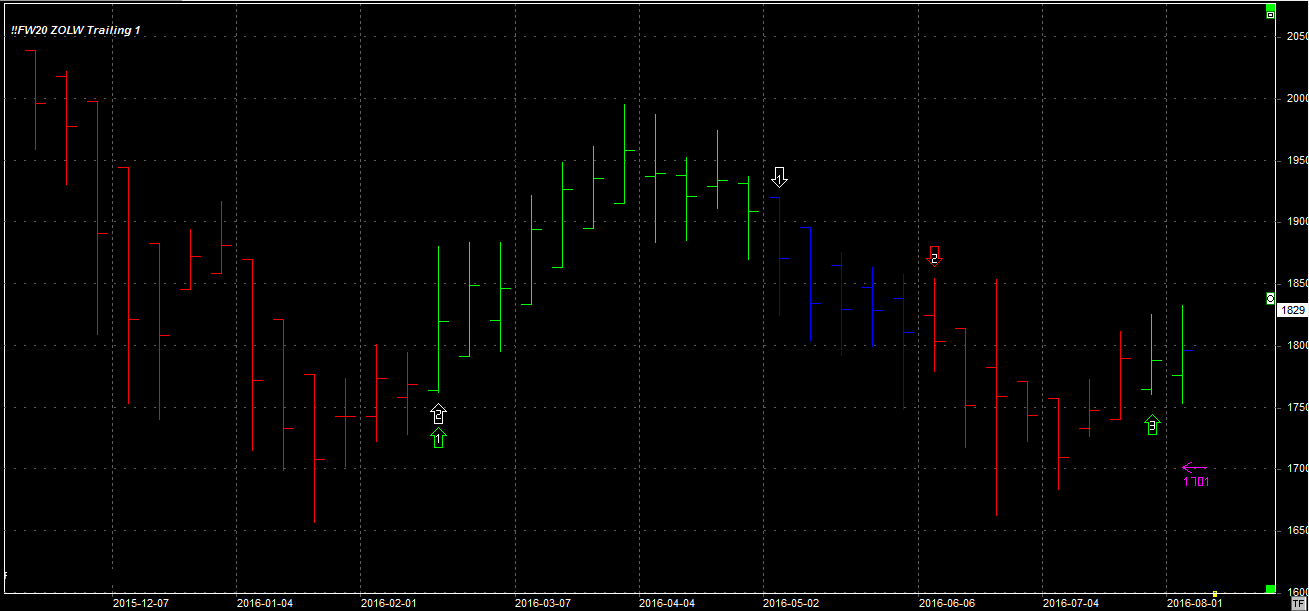 Tydzień zamknął się na poziomie 1829 pkt., 67 pkt. wyżej niż tydzień temu. System utrzymuje jedną długą pozycję po 1762 pkt. Stop na poziomie 1701 pkt.