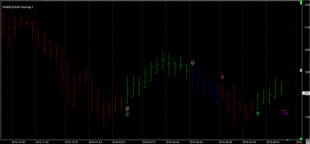 Tydzień zamknął się na poziomie 1808 pkt., 55 pkt. niżej niż tydzień temu. System utrzymuje jedną długą pozycję po 1762 pkt. Stop na poziomie 1731 pkt.